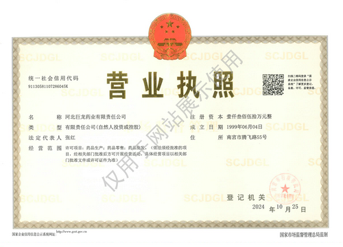 版權所有:河北巨龍藥業有限責任公司 冀ICP備19023826號-1   1733465040158507.png  冀公網安備13058102000452號 證書編號 :(冀)-非經營性-XXXX-XXXX